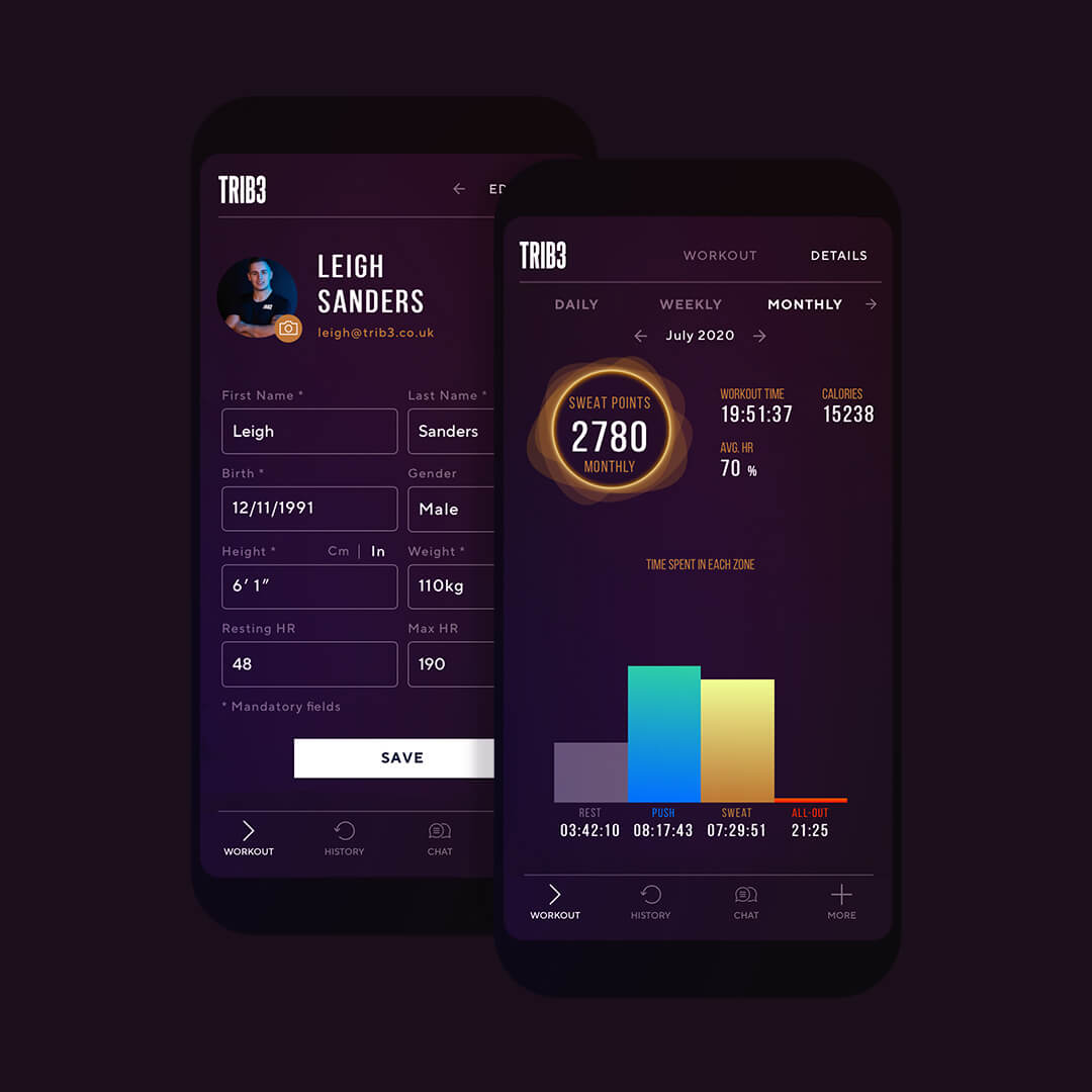 The closest thing to a TRIB3 studio without being there. Situated beside Home is the unforgettable, unmissable Live Studio. In this area, we’re all about epic lighting and pumping playlists. All our Resistance and Sweat workouts take place in the studio so if you’re looking to strengthen and tone or get seriously sweaty, you’re in the right place.